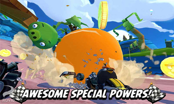 2、角色阵营高度还原原作,小鸟与绿猪各有专属卡丁车,角色形象与动作设计贴合原作的萌趣风格。