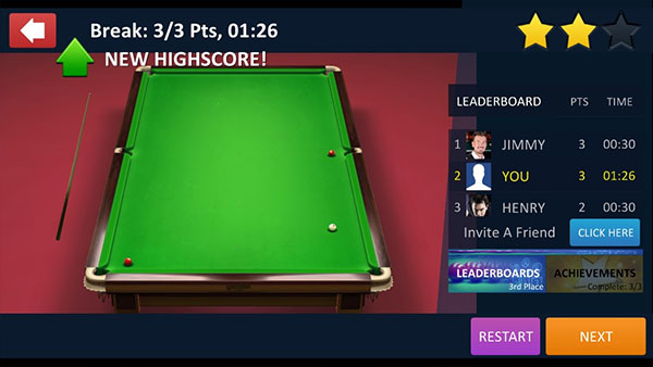 Snooker精准的触控操作与真实物理击球效果,让玩家能在指尖还原职业级的击球手感,无论是弧线球还是旋转走位都能精准实现,这种专业感是同类手游中少见的。多元玩法与隐藏场景的设计,玩起来不会觉得单调,满足了不同台球爱好者的需求,而全球球星角色的加入更增强了代入感,让玩家能以偶像的身份开启竞技之旅。