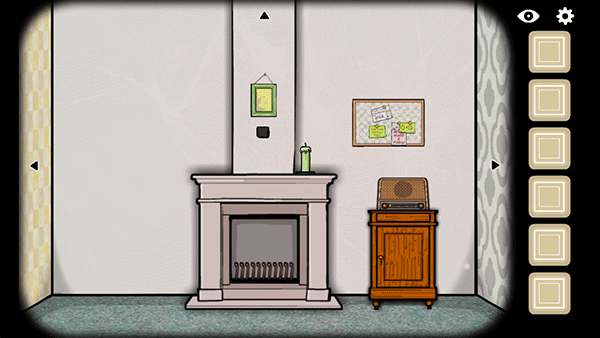 3、我们向右转,来到了火炉室,发现火炉竟然已经是烧的了,这下更恐怖了,明明没人啊。这时候我们更需要淡定,点开墙上的备忘板,可以发现纸片下有一片相片碎片,往下看,发现有一台电视,但是点开花屏貌似没有什么用。到这里为止,许多小伙伴可能就觉得这房间没什么可以探索了,可是,最关键的就在电视上,点开电视,发现电视的换台可以用,分别对应了数字,你按到4还是3的时候,电视就有画面了,都是显示的有关于数字的画面,我们只要按照他的画面提示,不停地换对应数字的台就好,最后就能取得方块啦。