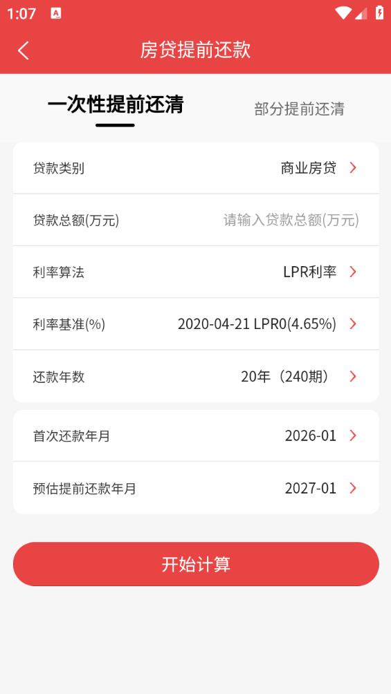 4、点击商业房贷,选择计算方式,输入总额,一键点击去计算。