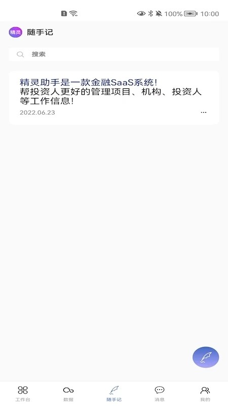 精灵助手是一款专为金融投资人量身打造的办公管理软件,不管是日常办公记录,还是投融资数据查询,都能一站式搞定,随时打开就能用,帮你高效处理工作,使用这款软件是可以其他提升办公效率,还有不同的工具提供,随时随地都是可以直接去开启操作,帮助你记录各种重要的事情,还可以进行会议记录,让你的生活更有条理,自己想要做到事都是可以直接记录的,工作效率全面提升,协同办公更加便捷容易,各种不同的功能全面去掌握。