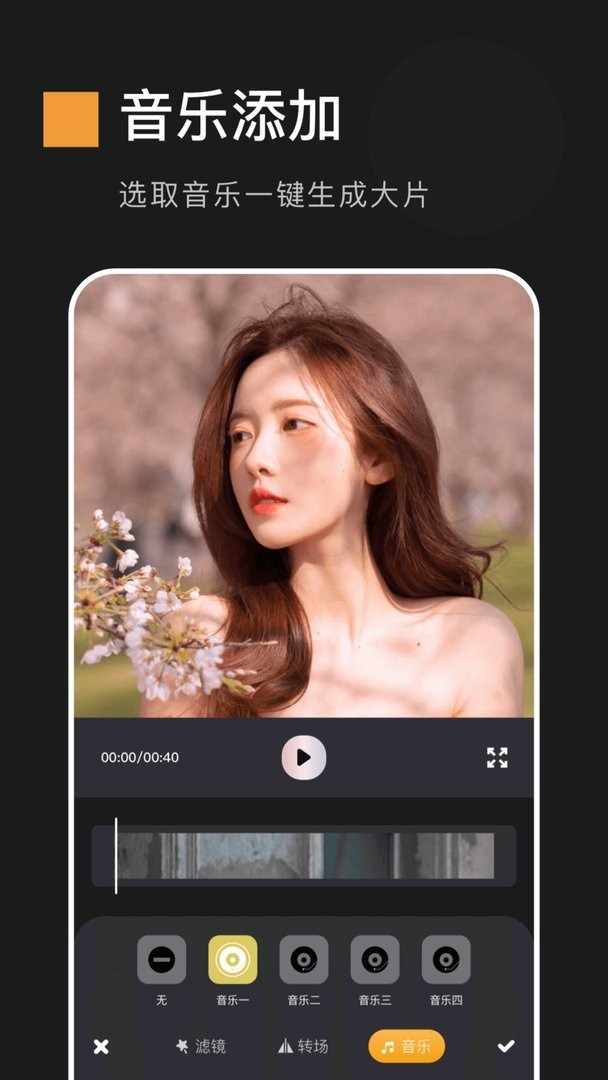 2、提供音乐一键添加功能,还可以去调整音乐时长和音量,贴合相册节奏。