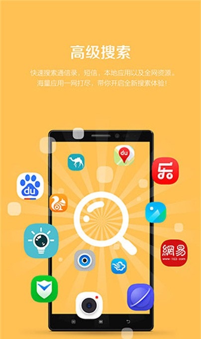 1、高级搜索超给力,通信录、短信、本地应用和全网资源都能快速搜到。