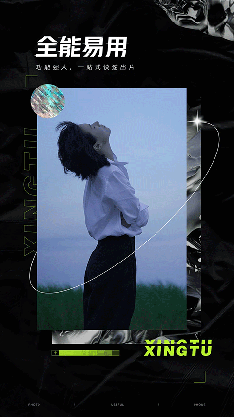 3、一键出片功能自带主角光环,故事感拉满,懒人也能快速出高质量照片,美图分享轻松。