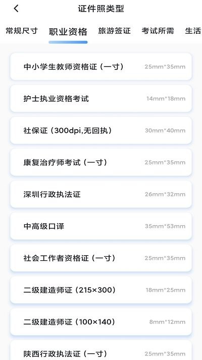 1、覆盖常规尺寸和各类考试、职业资格、签证所需的特殊尺寸,不用再手动换算尺寸。