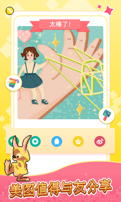 像素小画家打开就能玩超方便,像素画风软萌可爱,背景音乐也很轻快,图案分类超清晰,每日上新的图稿能保持新鲜感,还有实用的填色道具,新手也能快速出作品,能做任务领金币,作品也能存档,不管是碎片时间打发无聊,还是静下心来放松身心都超合适,没有绘画基础也完全没问题,轻松简单就可以去上手。