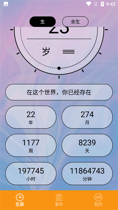 1、精准记录生命时长,清晰显示已存在的年、月、周、日、小时甚至分钟。