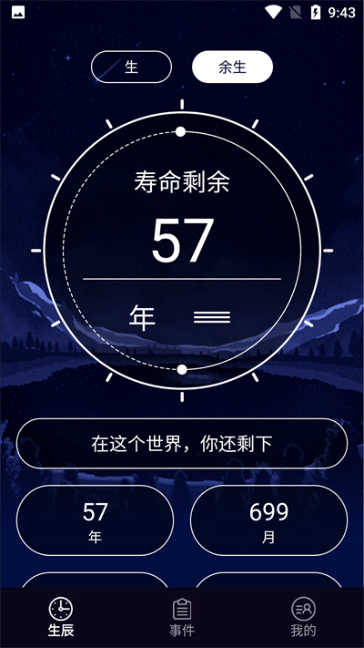 5、点击上方余生,根据你设置的岁数,为你进行倒计时。
