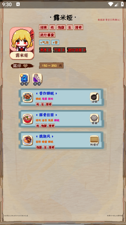 2、料理配方检索,根据角色喜好反向查找对应的料理做法,精准搭配客群餐食。
