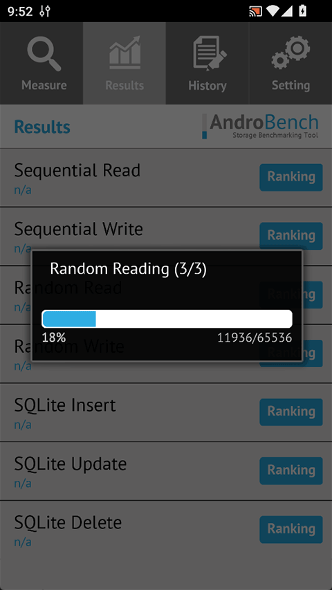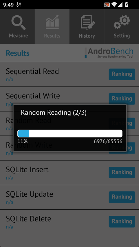 AndroBench点一下就能自动跑测试,不用复杂设置,测试结果特别详细,不仅有具体的读写速度,还有专业指标和排名,能清楚知道自己手机的存储性能,还能通过数据判断闪存类型,测试更精准,不管是想检测新机硬件,还是看看旧机存储状态都是非常的合适,任意测试功能简单去了解的。