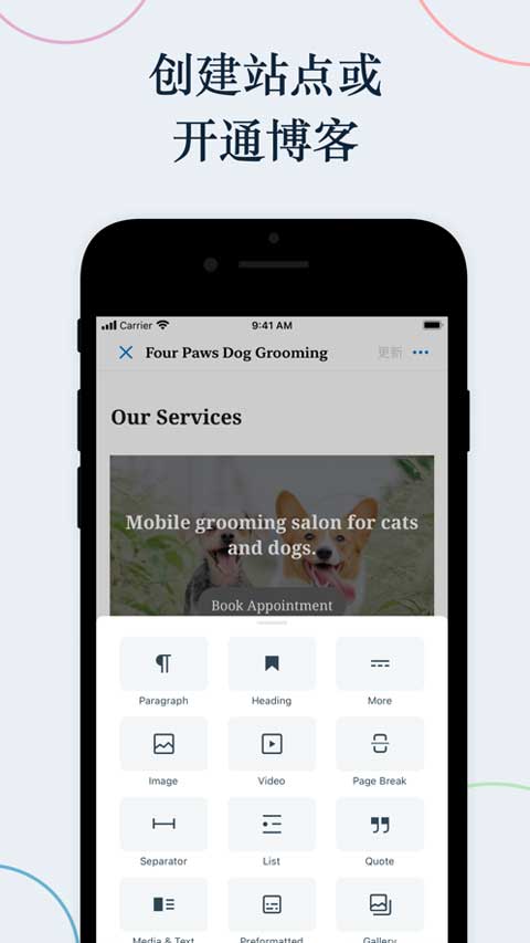 WordPress搭网站、更博客全程点点点就能搞定,还能和电脑端同步,外出随时创作,配图、排版都很方便,还有实时数据统计和互动提醒,运营省心,不管是个人写博还是做小型站点,让用户进行操作都是极其的便捷,各种编辑工具使用更简单,手机去开启编辑一键操作,各种功能模式全面掌握。