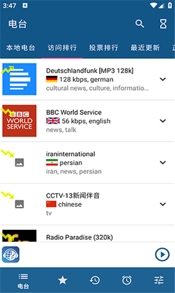 2.全球海量电台频道与多元有声内容,覆盖全品类音频风格,满足不同场景与偏好的收听选择。