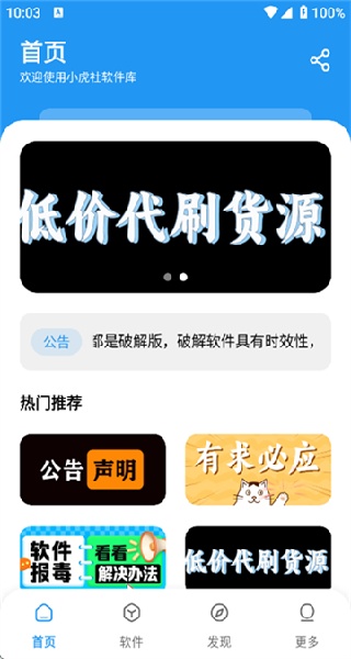 小虎社是一款都能用的全能资源下载软件,主打全品类免费资源分享,不光有热门的应用、游戏,还有超多不好找的小众工具,各类破解版、改版软件能在这找到,而且所有资源都经过安全检测,下载安装不用怕病毒和捆绑插件,小虎社更新速度快,每天都有专人维护更新资源,新软件、新功能第一时间上架,还有高效搜索功能,输个关键词精准找到想要资源,小虎社除了下载资源,还有发现专区,能看羊毛福利、休闲小视频,还有短信测压、视频解析这些特色小功能。
