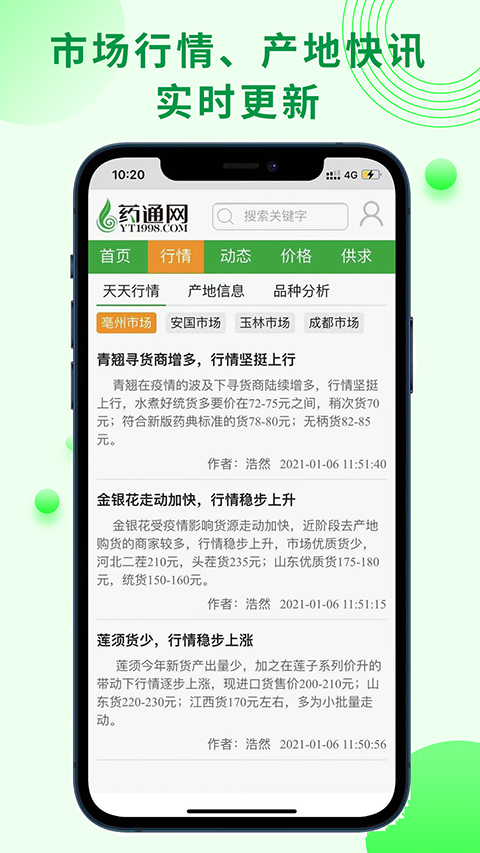 1、天天更新全国药材市场最新行情,产地快讯、品种分析实时进行推送。