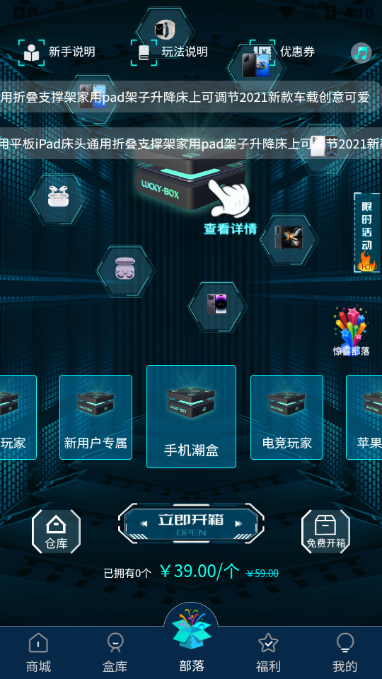 1、汇聚各类潮品、日用等多品类盲盒,奖品池内容丰富,不同喜好的用户都能找到心仪盲盒。