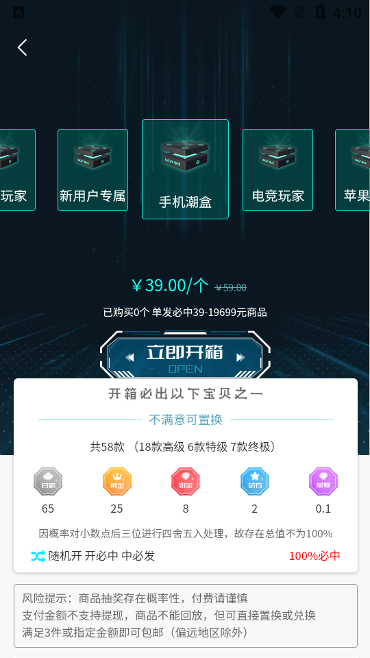 2、概率透明信息公开,各类盲盒的奖品等级、抽取概率详细公示,让用户清晰了解玩法规则。