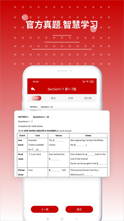 3、复刻雅思听力考试的题型与流程,考完可查看作答情况与分数评测,熟悉应试规则。