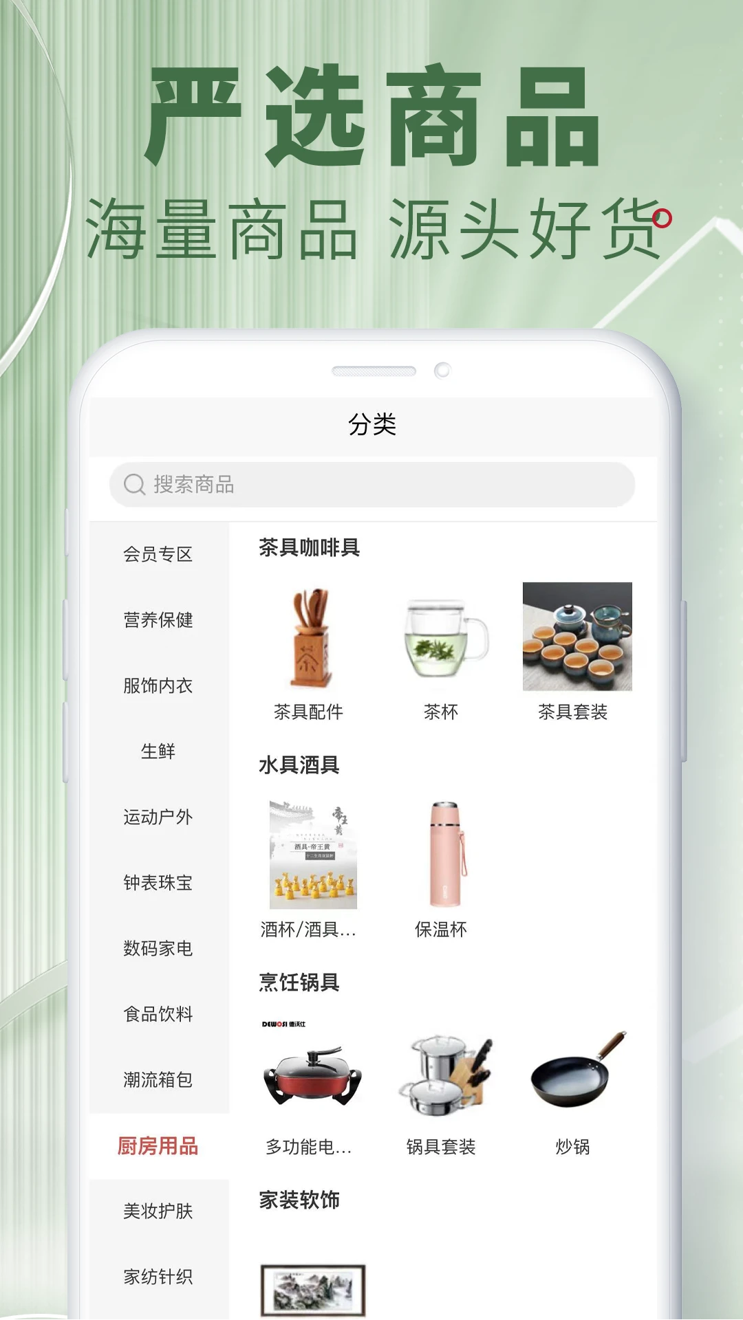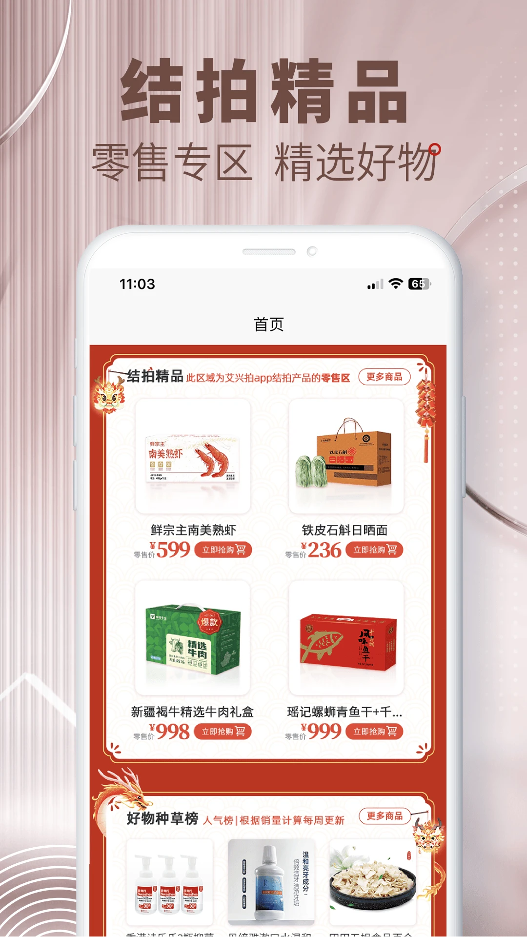 1、商品均为品牌直采的源头好货,覆盖数十个品类,还有专属结拍精品专区。