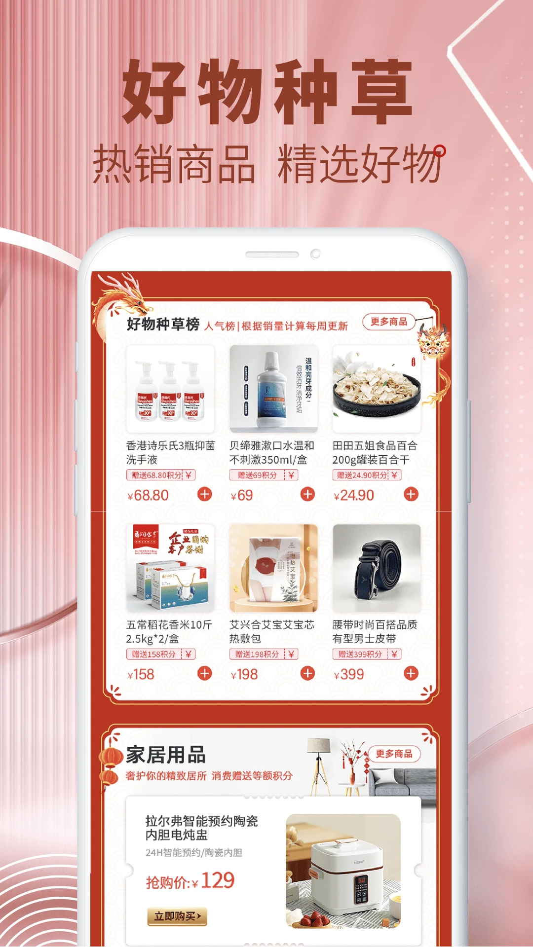 1、支持商品分类浏览、关键词精准搜索,还有好物种草榜、人气榜实时更新。