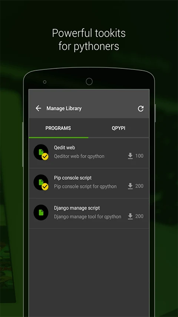 QPython3手机版是一款在安卓设备上跑Python的脚本引擎,同时也能当QR码阅读器用。装上QPython3之后,手机就能直接运行Python脚本和项目,不需要联网,代码传到手机上就能跑。QPython3支持的项目类型挺多,控制台程序、SL4A脚本、WebApp都能跑。SL4A是它特别强化的一块,通过这个可以用Python调用安卓的底层功能,比如传感器、摄像头、硬件接口这些,相当于用Python给安卓编程。QPYPI和自定义仓库里还放了些预编译的科学计算包,numpy、scipy、matplotlib、scikit-learn、keras这些都有。