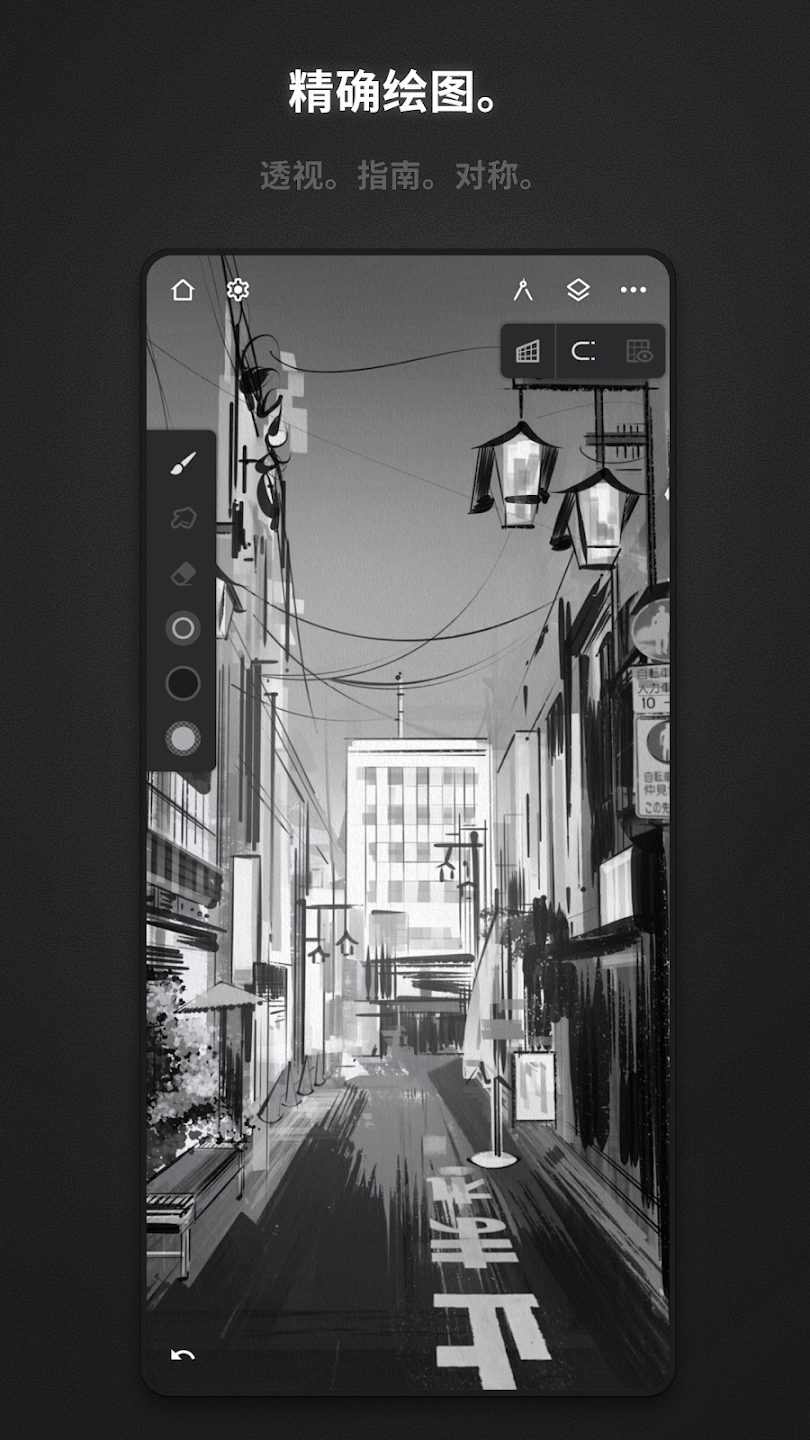 2、运用先进平板绘画引擎,搭配对称与透视工具,提升精准绘画与场景创作能力。