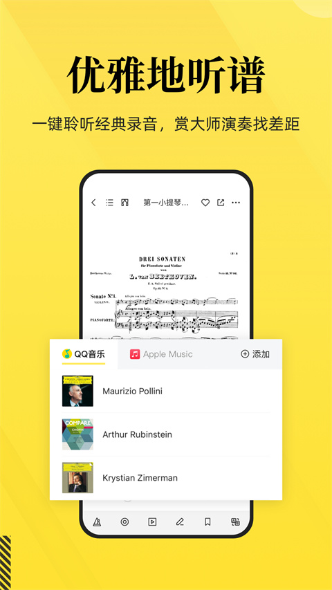 3、每首乐谱都搭配经典演奏录音,边听边读谱,大师音频听谱,快速找准演奏的细节。