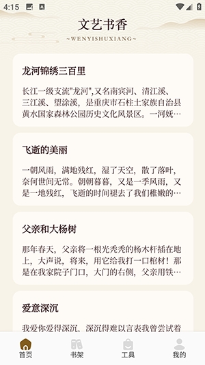 悦光宝盒app是一款免费阅读软件,界面能自己调,章节智能跳转,离线下载也能用。有声阅读沉浸感不错,多端同步让阅读更自由。读书笔记和诗词创作社区这些互动功能悦光宝盒都有,既有现代阅读效率又有传统文化氛围。小说模块个性化设置兼顾专业性和舒适度,适配不同阅读目的。精准把握传统文化和个性化小说的双重需求。自动同步进度和手动批注结合,帮用户留存阅读收获。悦光宝盒会根据阅读时长、偏好这些数据,智能推送合适的诗词和小说,文化积累和休闲需求都照顾到了。