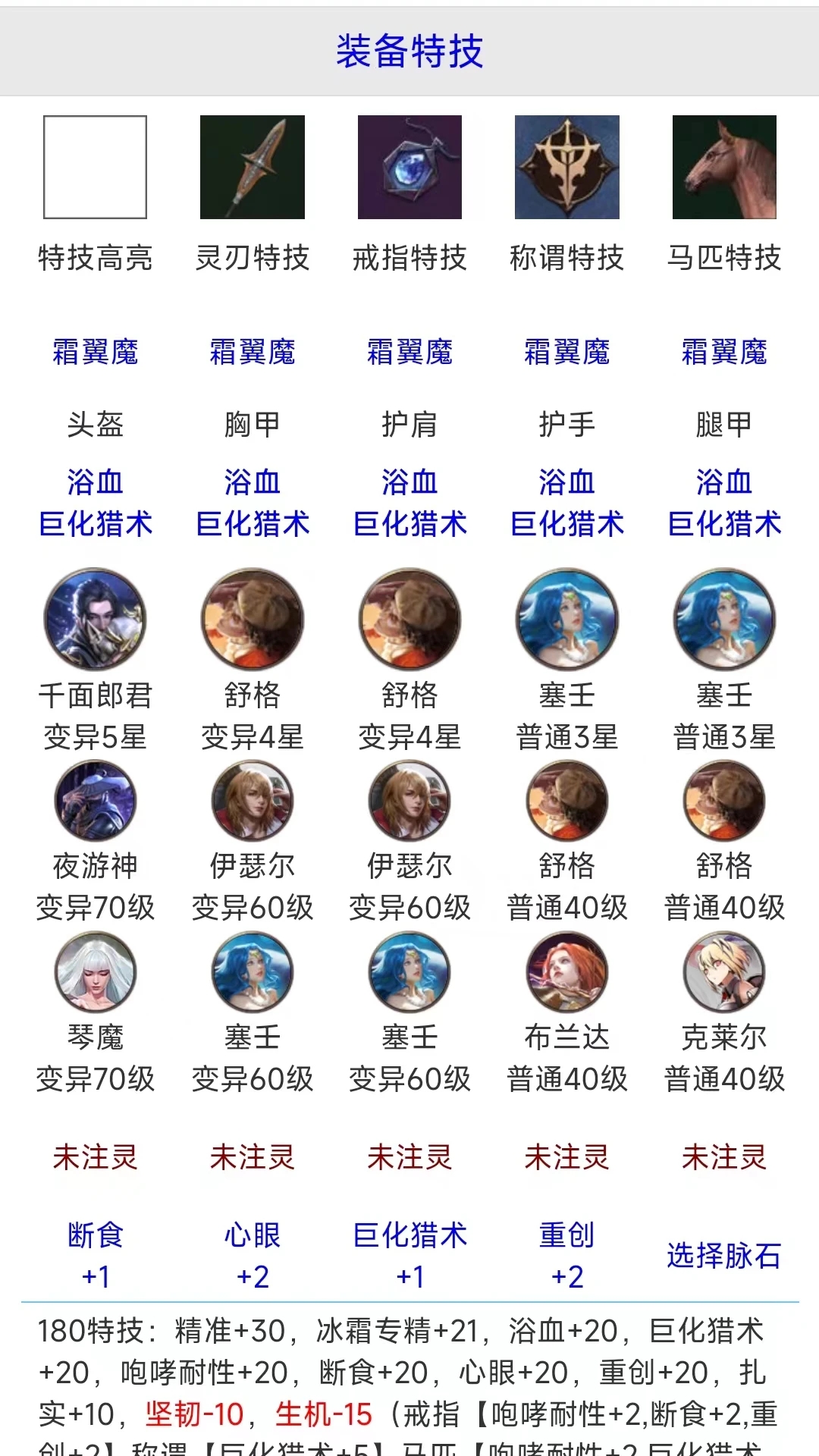 此外,这个配置只是案例, 我们实际去实现类似这种特技组合并不一定非得用上述推荐的这些猎魂,也可以根据自己实际的魂库灵活搭配。
