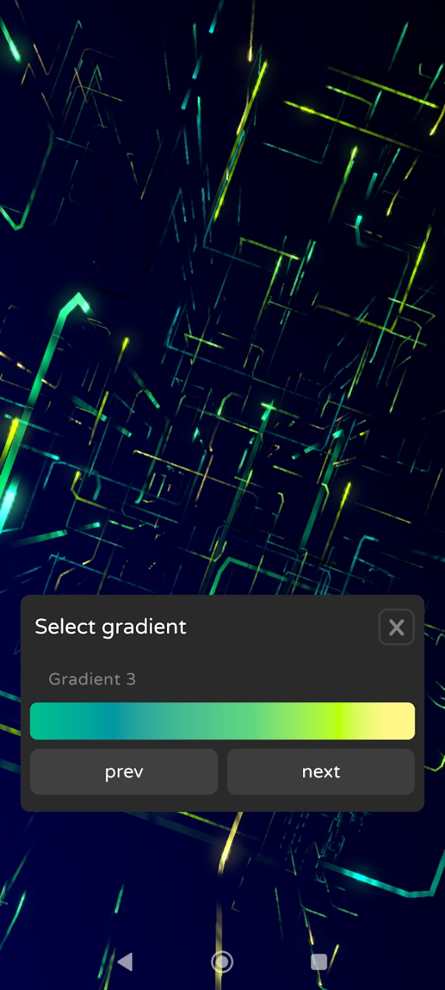 1、一个国外的动态壁纸APP,样式只有一个,那就是用各种发出炫彩霓虹灯效果的线条相互交错和重力感应来让壁纸产生空间感的效果,让人一看就觉得是黑科技。