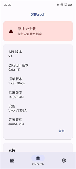 ONPatch框架app是一款基于LSPosed核心修改的免Root框架工具,专门为安卓手机设计,主要用来给原神、微信这类应用注入功能模块。ONPatch最大的好处是不用折腾手机Root,装好就能用,而且对原神的支持比较到位,比如可以开无限资源、一键完成任务、自定义角色属性等,让游戏玩起来更爽快。ONPatch提供了本地修补和集成修补两种模式,能适配不同安卓版本和ROM,兼容性不错。注入成功后就能体验各种增强功能,还能解决游戏闪退、卡顿之类的问题。