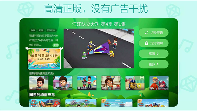 3、海量正版儿童内容持续更新,覆盖知名动画IP,总时长超过30000小时可供观看。