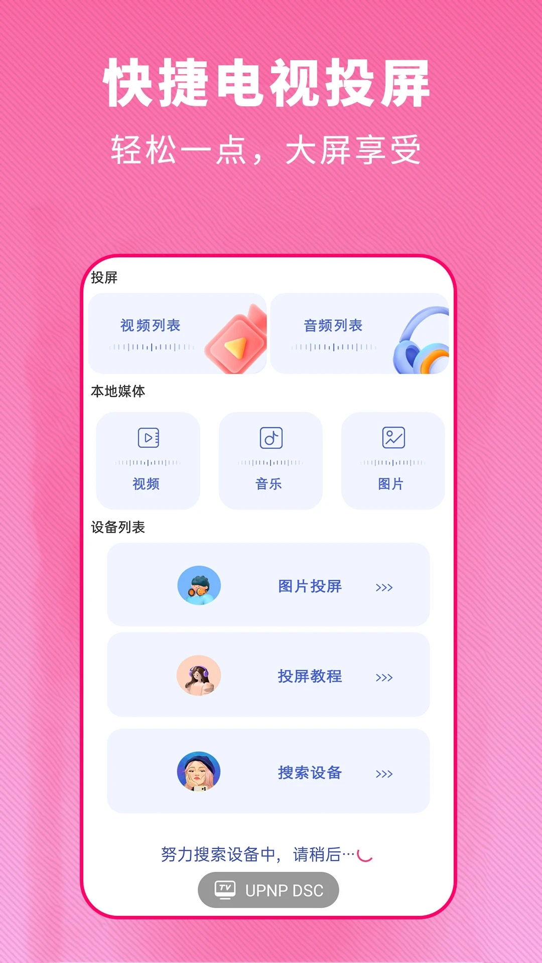 手机内的视频、图片、音乐等一键就能推送到电视上去,十分快捷。