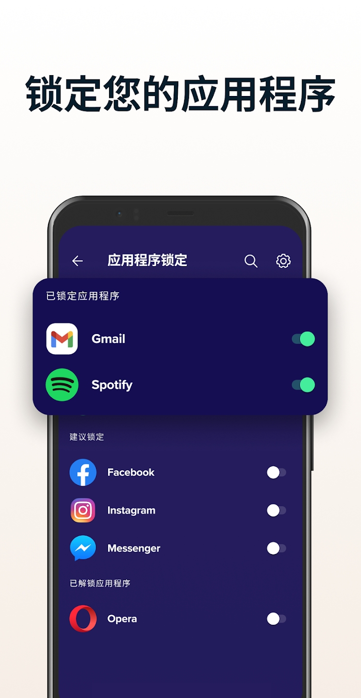 2、锁定敏感应用防止他人随意打开,多重防护守护手机应用隐私。