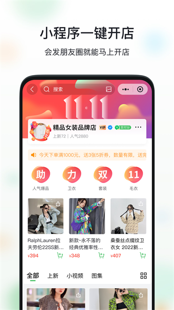 3、软件有小程序开店工具,会发朋友圈即可快速上线,降低创业启动难度。