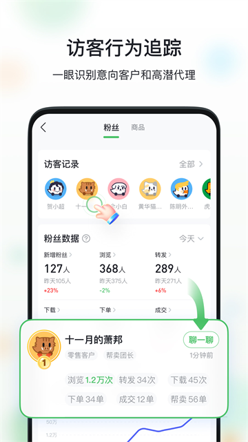 1、访客行为实时追踪统计,精准识别意向客户,助力高效转化与成交。