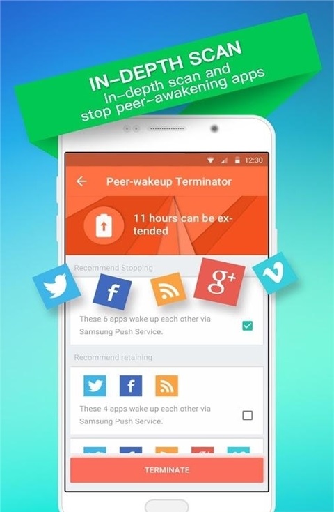 1、能检测出通过推送服务相互唤醒的应用,从根源上切断耗电链条,便捷操作。
